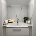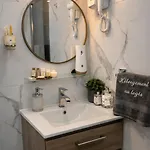 Det finns strykutrustning, strykjärn med strykbräda och luftkonditionering samt TV och plattskärms-TV med satellitkanaler för optimal komfort. Förutom soffa och arbetsbord har inredningen sten eldstad. I badrummet finns även en separat toalett, ett badkar och en dusch. Hårtorkar, badlakan och handdukar erbjuds också.